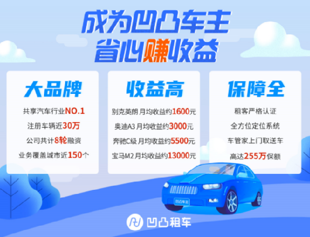 能在南京这样的大城市发展的租车平台都比较有实力,因为在南京想占有一席之地,首先自己要有数量庞大的车辆,服务要一流,租车办理手续要简化,价格要实惠,才能在南京立住脚。凹凸租车在这方面就比较有优势,是当前最强的一家共享租车平台,已经和30多万私家车合作,注册租客多达1500万。把车辆托管给这样的平台,私家车不愁赚钱,还能享受255万的大额保险,让你在这里托管私家车无任何风险。